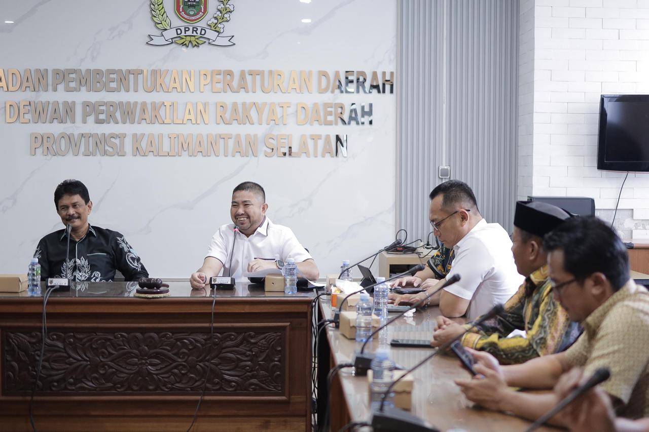 Banjarmasin, humas- DPRD Provinsi Kalimantan Selatan terima kunjungan kerja (Kunker) DPRD Kabupaten Tanah Bumbu (Tanbu). Pertemuan tersebut berlangsung di ruang Bapemperda DPRD Kalsel. Jumat, 26/07.