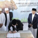 Satu ekor sapi Limousin dengan berat kurang lebih 1.100 Kg diserahkan langsung oleh Gubernur Kalsel kepada Wakil Ketua Badan Pengelolal Mesjid Raya Sabilal Muhtadin H.M Fadlian Noor.