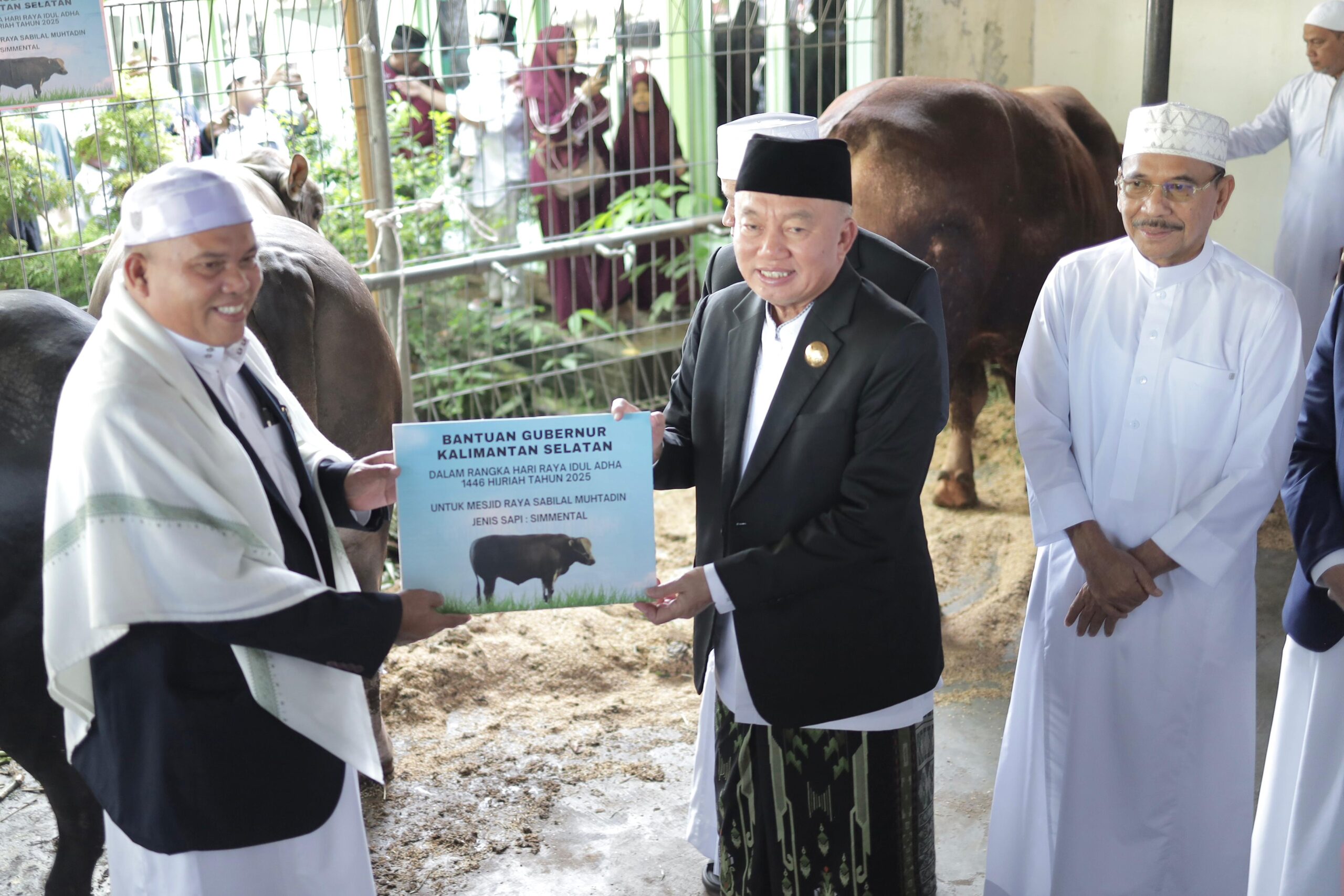 Satu ekor sapi Limousin dengan berat kurang lebih 1.100 Kg diserahkan langsung oleh Gubernur Kalsel kepada Wakil Ketua Badan Pengelolal Mesjid Raya Sabilal Muhtadin H.M Fadlian Noor.