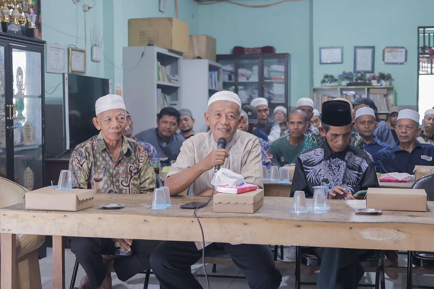 Suasana pertemuan berlangsung penuh keakraban. Para peserta yang hadir merupakan ketua-ketua RT, tokoh masyarakat, serta tokoh agama dari wilayah setempat. Mereka secara bergantian menyampaikan berbagai aspirasi, mulai dari program bedah rumah, permohonan pembangunan dan perbaikan jalan, hingga kebutuhan tiang listrik di beberapa titik desa.