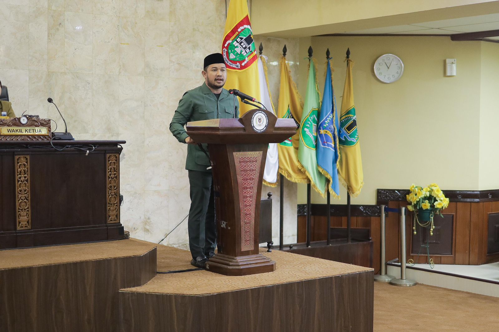 “Kemudian Pasal 79 Ayat 1 menegaskan sebagaimana dimaksud dalam Pasal 78 Ayat 1 Huruf a dan b serta Ayat 2 Huruf a dan huruf b bahwa Pemberhentian Kepala Daerah diumumkan oleh Pimpinan DPRD dalam rapat Paripurna DPRD dan diusulkan pengesahannya kepada Presiden melalui Menteri Dalam Negeri,” ucap H. Kartoyo.