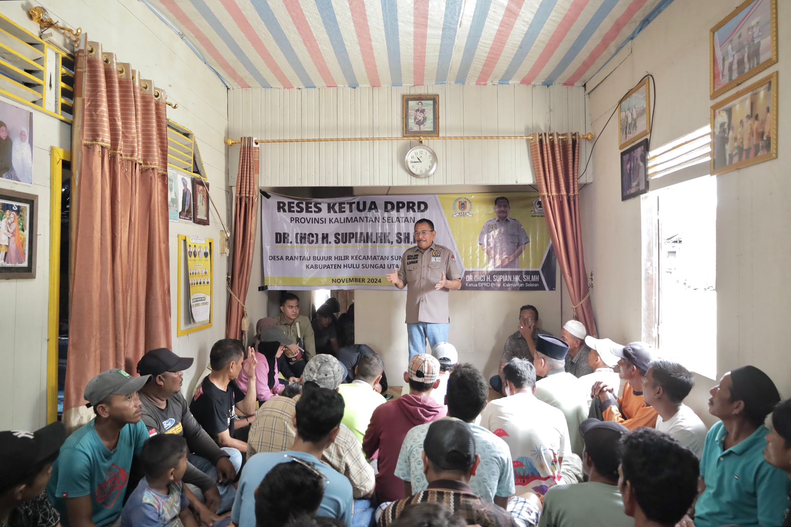 Hulu Sungai Utara – Ketua DPRD Provinsi Kalimantan Selatan (Kalsel) H. Supian HK serap berbagai aspirasi masyakat di 16 Desa di Kabupaten Hulu Sungai Utara (HSU) pada gelaran Reses Masa Sidang III tahun 2024 yang dimulai sejak 10 hingga 17 November 2024.