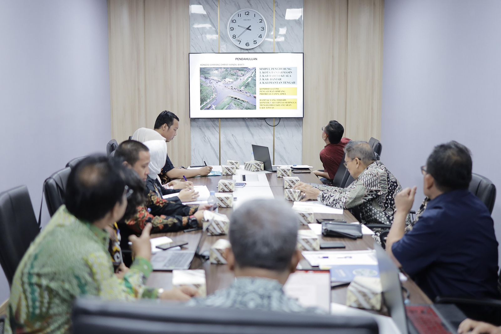 Dilain sisi Kepala Sub Direktorat Perlengkapan Jalan Suhendro Wagiyono, ST., M. M. Tr., mengaku senang dengan kedatangan teman-teman dari provinsi Kalimantam Selatan, membahas mengenai permasalahan perempatan ini, “Jadi saya setuju aja kalo misalnya ini menjadi prioritas untuk menangani simpang empat ini.”