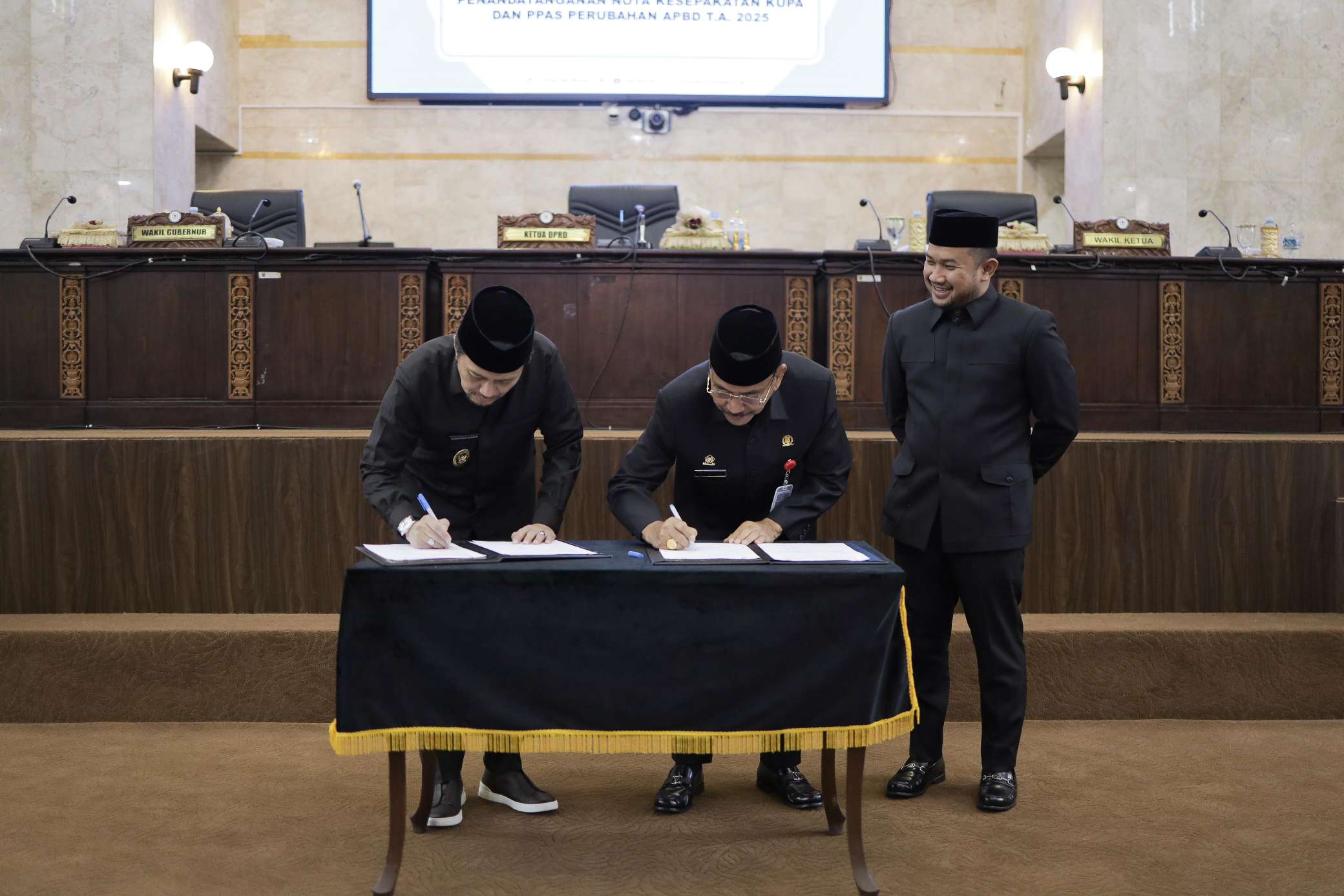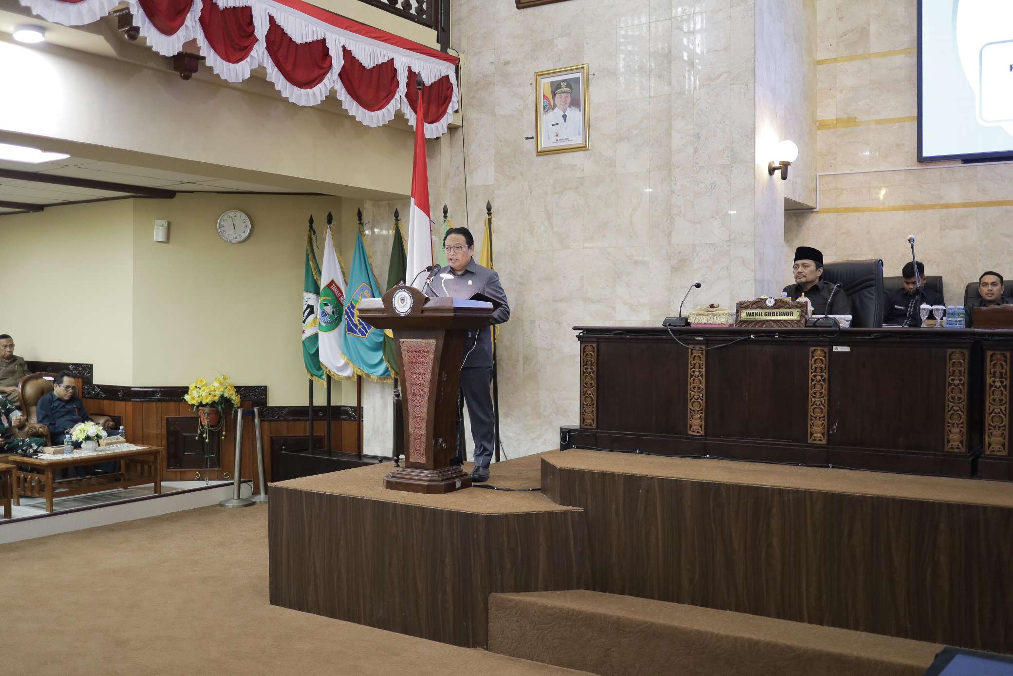 Rapat Paripurna ini turut dihadiri oleh unsur Forum Koordinasi Pimpinan Daerah (Forkopimda), jajaran kepala SKPD lingkup Pemerintah Provinsi Kalsel, serta para anggota DPRD dari berbagai fraksi.