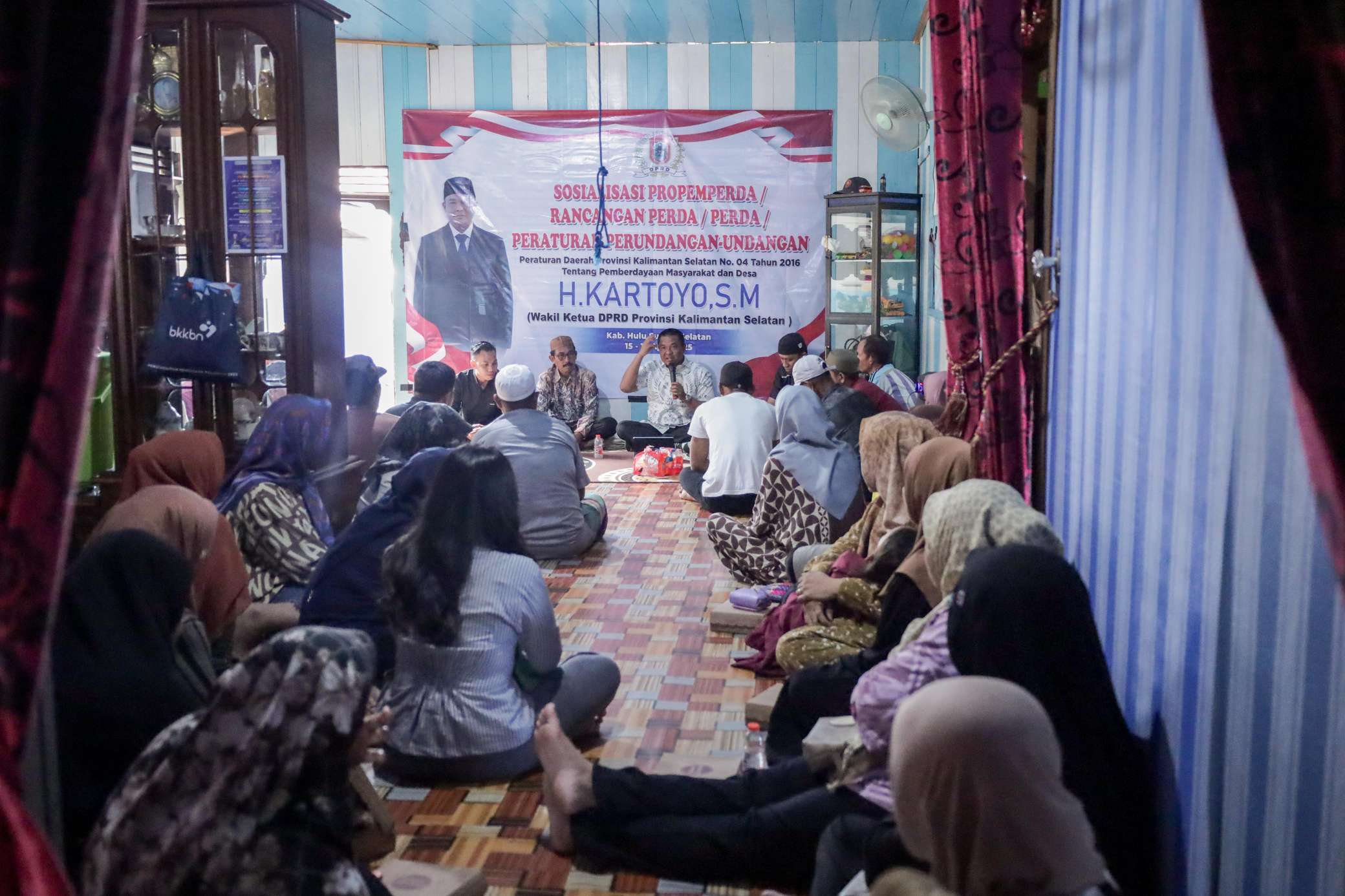 HSS – Wakil Ketua DPRD Provinsi Kalimantan Selatan, H. Kartoyo, S.M., melaksanakan Sosialisasi Peraturan Daerah (Perda) Nomor 04 Tahun 2016 tentang Pemberdayaan Masyarakat dan Desa yang berlangsung di Desa Samuda, Kecamatan Daha Selatan, Kabupaten Hulu Sungai Selatan pada Rabu, 16 April 2025.