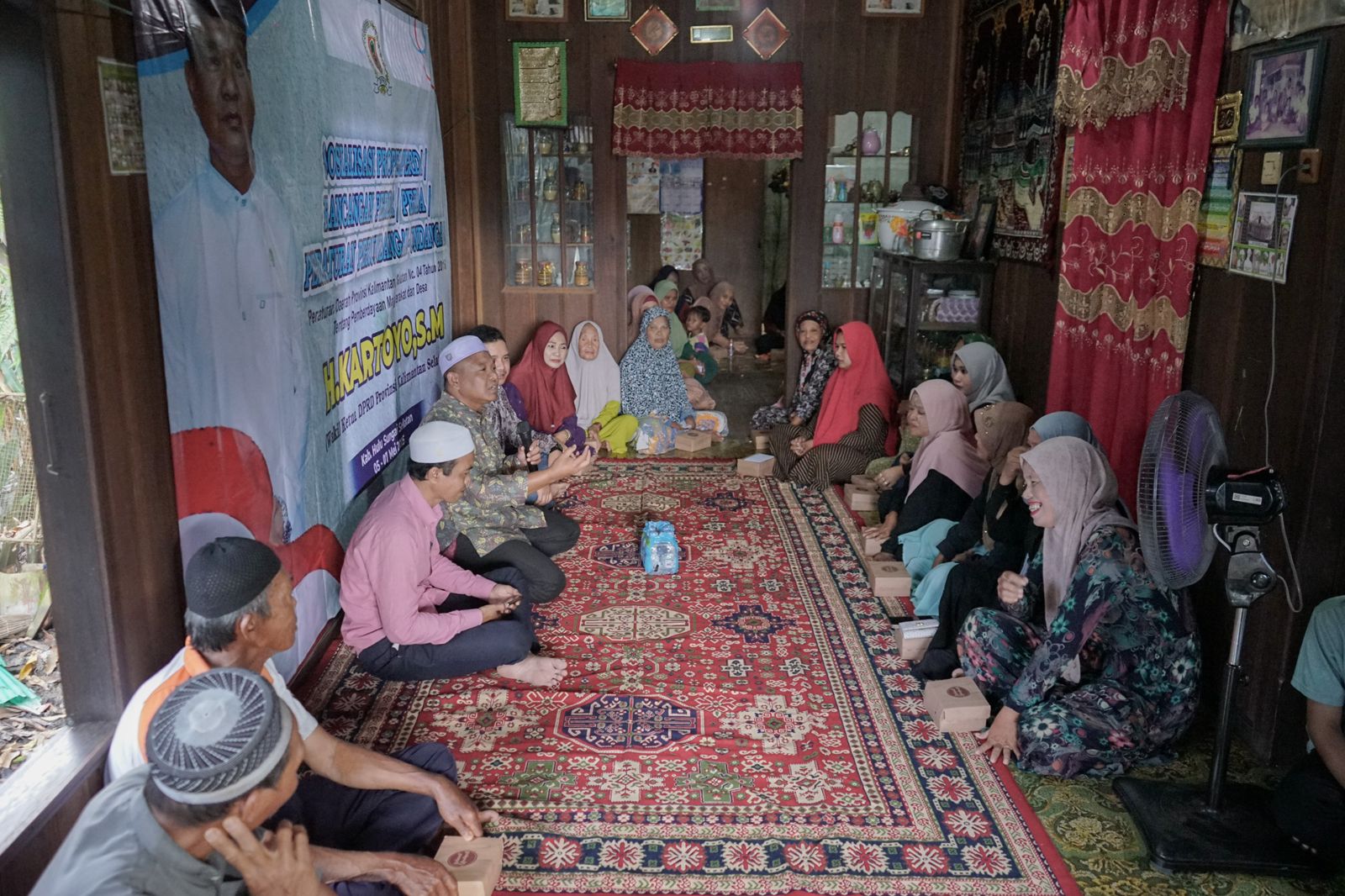 HSS – Wakil Ketua DPRD Provinsi Kalimantan Selatan, H. Kartoyo, melaksanakan kegiatan sosialisasi Peraturan Daerah (Perda) Nomor 4 Tahun 2016 tentang Pemberdayaan Masyarakat dan Desa di Desa Hamayung, Kecamatan Daha Utara. berlangsung di salah satu rumah warga setempat dan dihadiri oleh masyarakat desa pada Selasa (06/05/2025).
